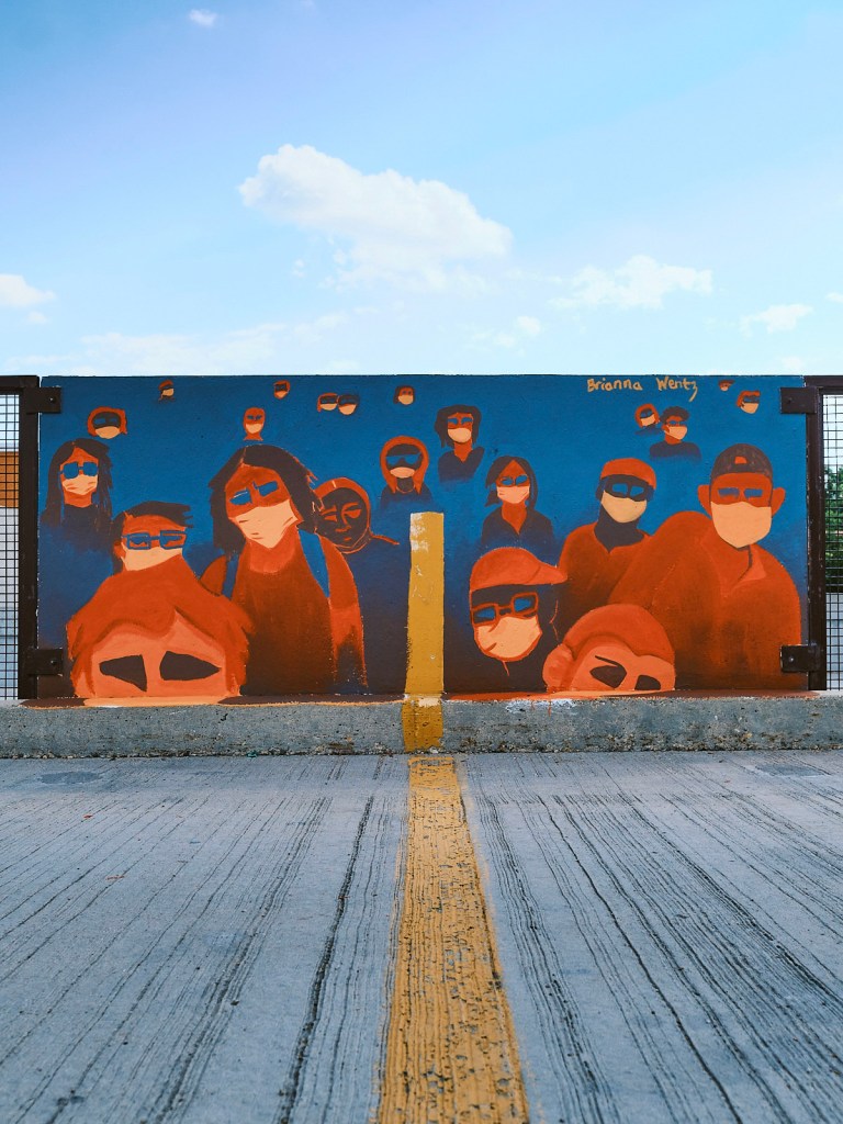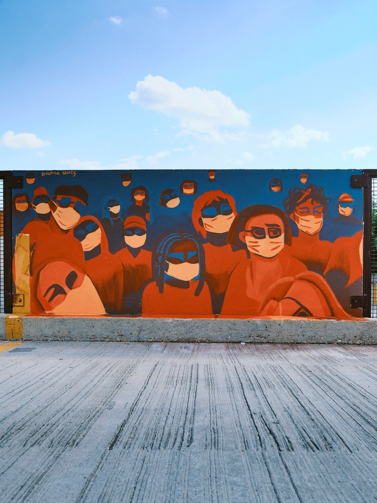 2020, 2020, diptych mural, latex wall paint on concrete, 72″x36″. Rooftop of parkade at The Forks, 1 Forks Market Rd., Winnipeg, MB. Photo by Calvin Lee Joseph. Commissioned by The Forks and Synonym Art Consultation. 2020, 2020, left side, latex wall paint on concrete, 72″x36″. Rooftop of parkade at The Forks, 1 Forks Market Rd., Winnipeg, MB. Photo by Calvin Lee Joseph. Commissioned by The Forks and Synonym Art Consultation. 2020, 2020, right side, latex wall paint on concrete, 72″x36″. Rooftop of parkade at The Forks, 1 Forks Market Rd., Winnipeg, MB. Photo by Calvin Lee Joseph. Commissioned by The Forks and Synonym Art Consultation.