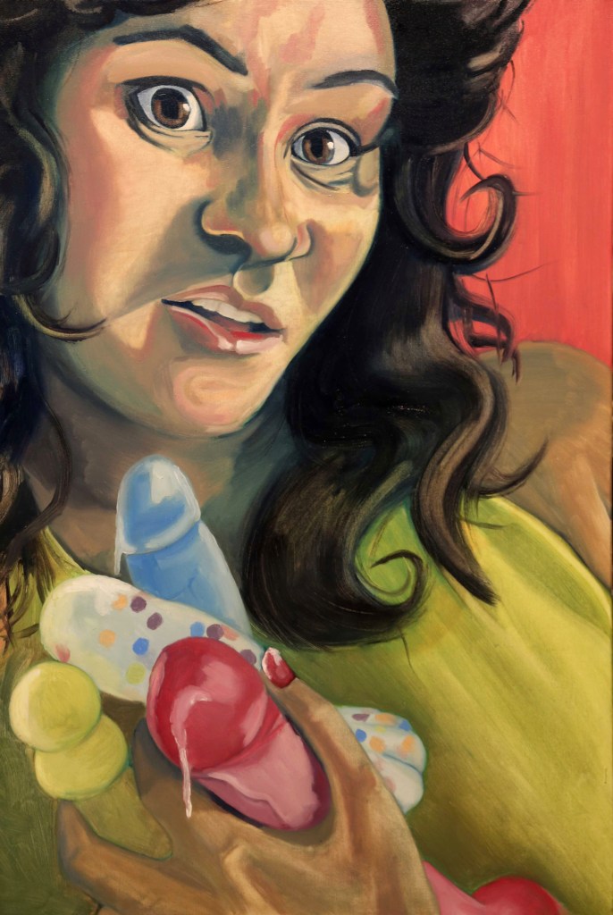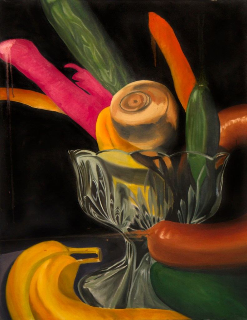 Phallic Phruit Bowl, 2017, oil on canvas, 42″x52″Bob Reclining, 2017, oil on canvas, 24″x36″