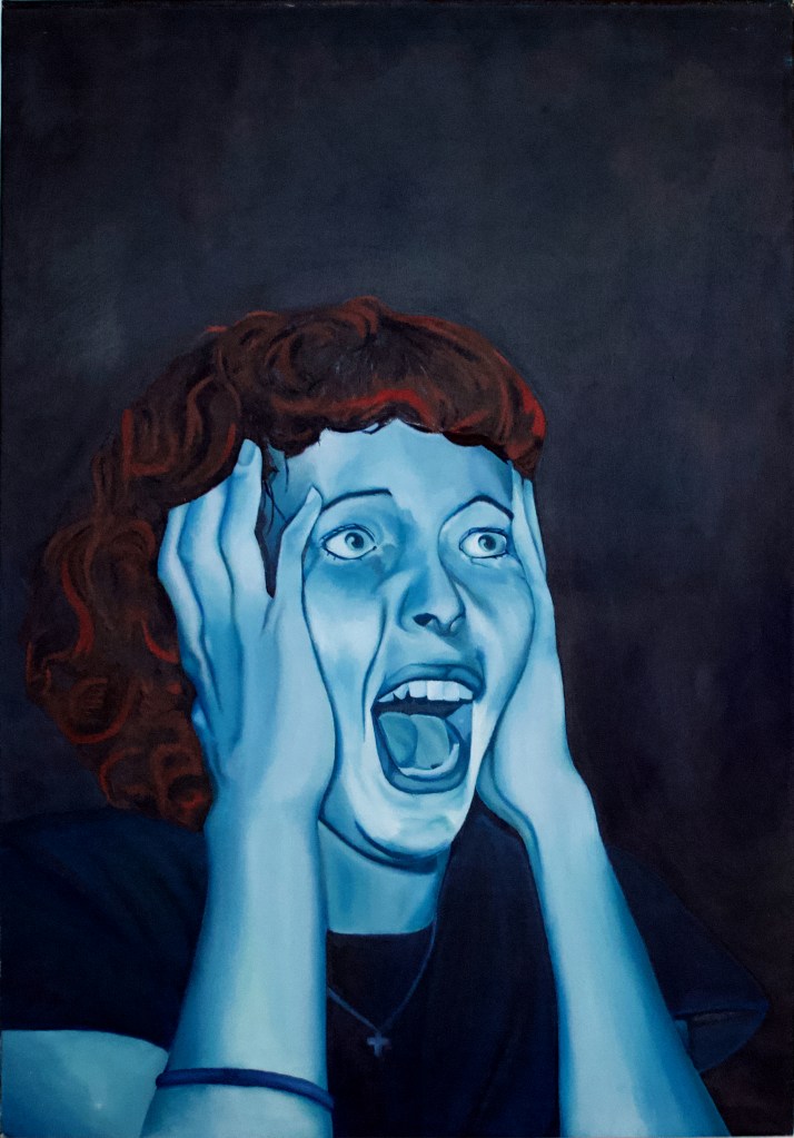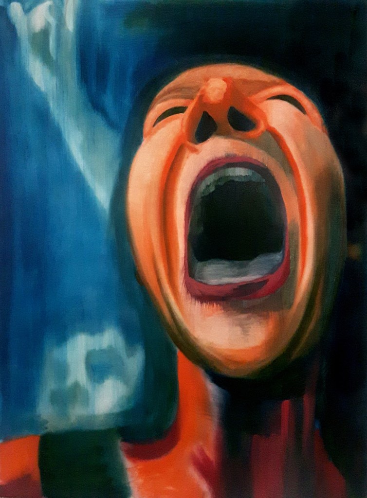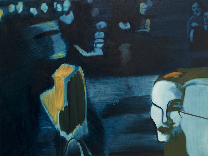 Intermission, 2018, oil on canvas, 30″x42″Collision, 2018, oil on canvas, 30″x42″Scream no. 2, 2018, oil on canvas, 36″x48″Gaze, 2018, oil on canvas, 36″x48″Distraction in Blue, 2018, oil on canvas, 48″x36″