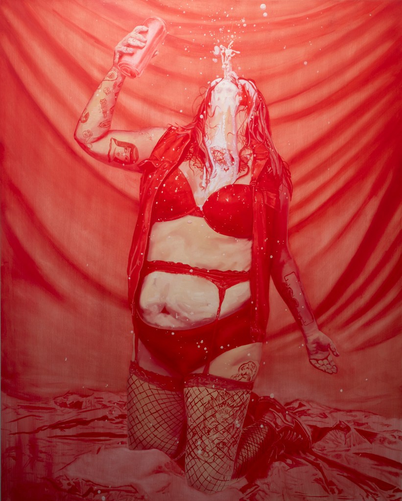The Eruption, 2024, oil and latex paint on wood panel, 48″x60″, featured in WARPAINTFairies Wear Boots, 2024, oil and latex paint on wood panel, 48″x60″, featured in WARPAINTWe Bloom in Gloom, 2024, oil and latex paint on wood panel, 24″x30″, featured in WARPAINT